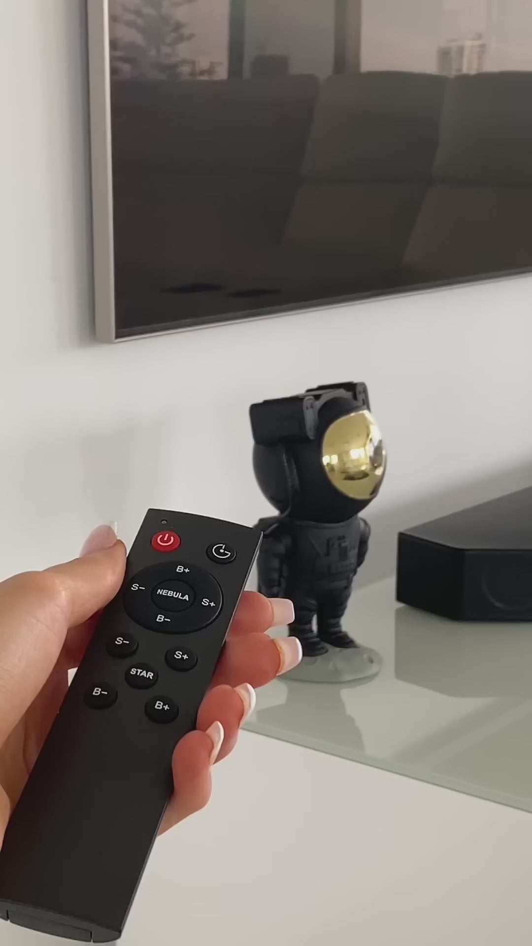 - Remote Control Functionality: Easily switch between lighting modes, adjust brightness ($B+/B-$), and control the speed of the nebula flow from a distance.